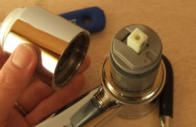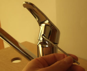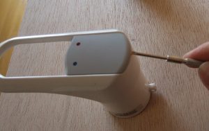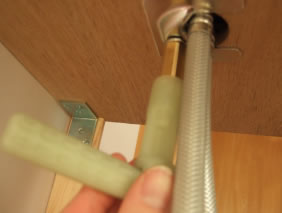 簡単に使い方を説明すると、この専用工具を蛇口裏側にある穴に差し込んで使います。